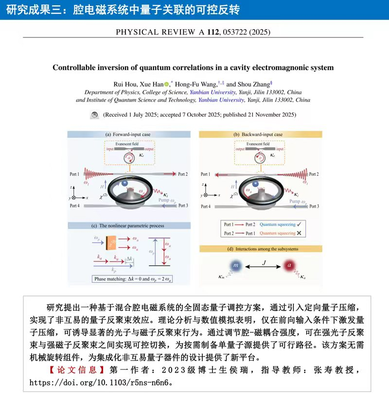 (科学技术处供稿)近日,延边大学理学院物理学科在量子科研领域取得重要突破,四篇研究论文于11月同期发表于物理学权威期刊《Physical Review A》(PRA)。该期刊作为Nature Index来源期刊,在量子物理研究领域享有重要学术声誉,所刊载成果通常代表相关方向的国际前沿水平。
