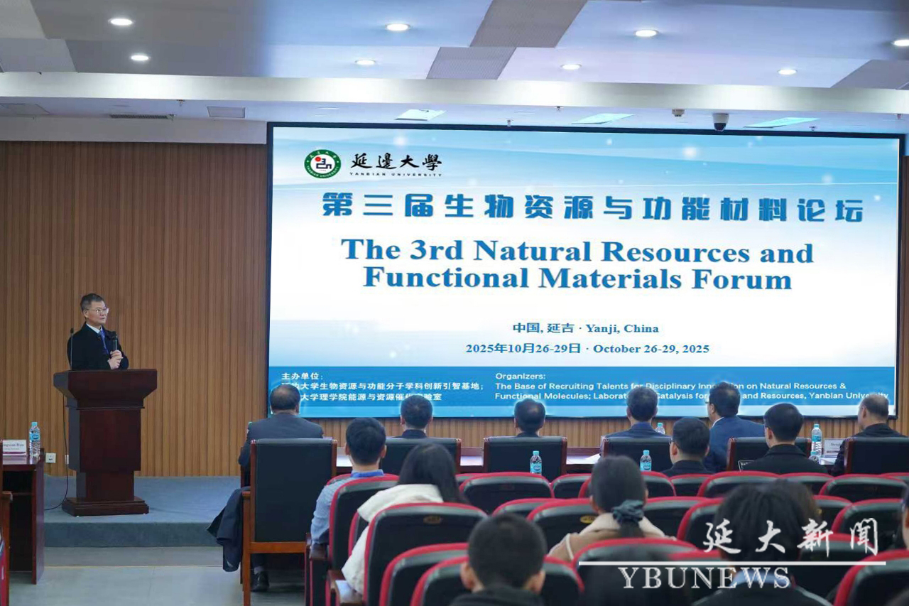 (理学院供稿)10月27日至28日,第三届生物资源与功能材料论坛在延边大学举办。副校长(主持学校行政工作)孙俊奇出席开幕式并致辞。