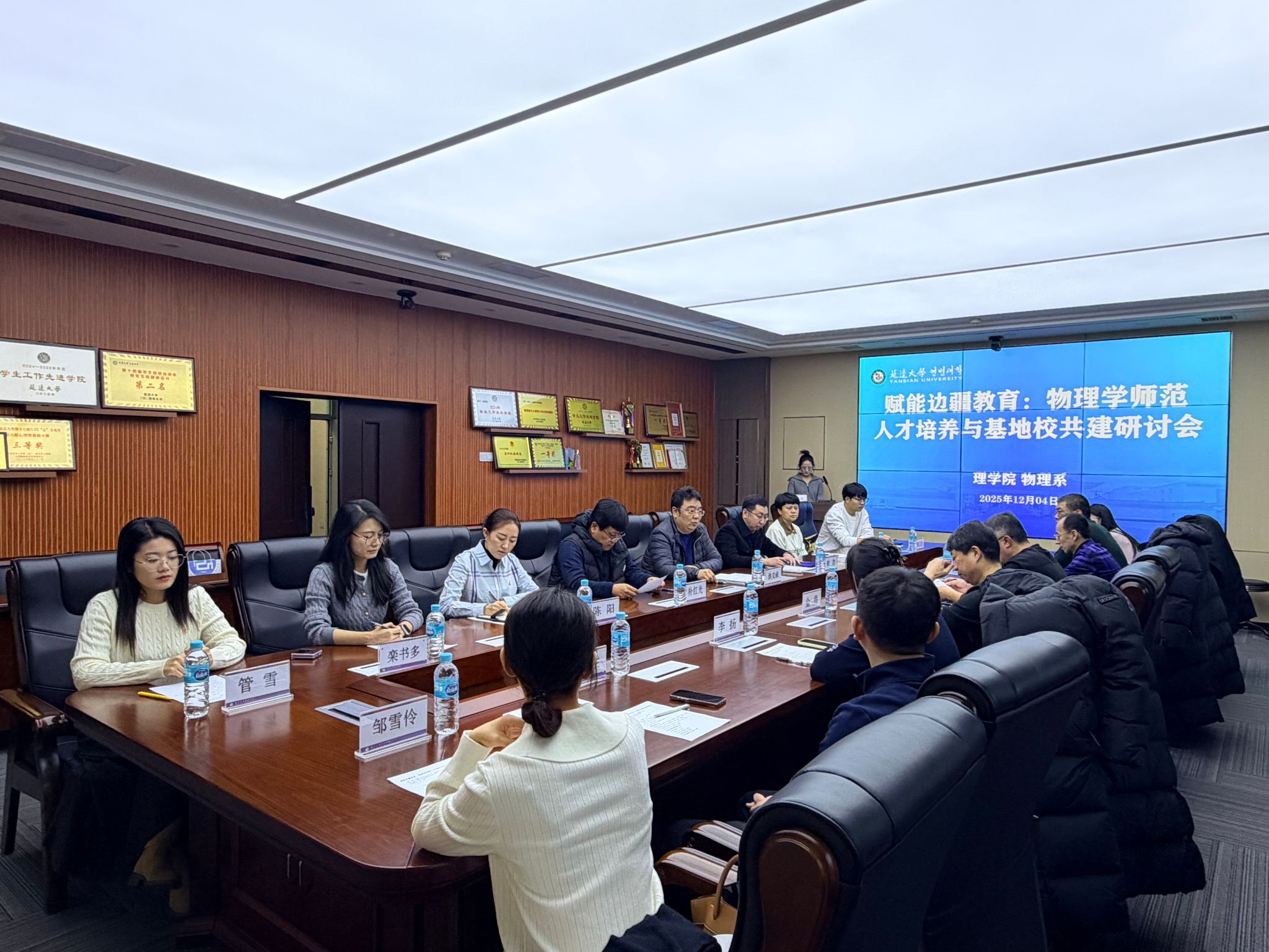2025年12月4日下午,延边大学理学院物理系在理工实训楼理学院会议室召开“赋能边疆教育:物理学师范人才培养与基地校共建研讨会”。会议邀请延边第一中学、延吉市第二高级中学、延吉市第三高级中学、延吉市第三中学等基地校的教务主任、物理教研组长参加,与延边大学理学院领导、物理系教师代表共同探讨高校与基础教育协同育人机制,共谋边疆物理教育高质量发展。