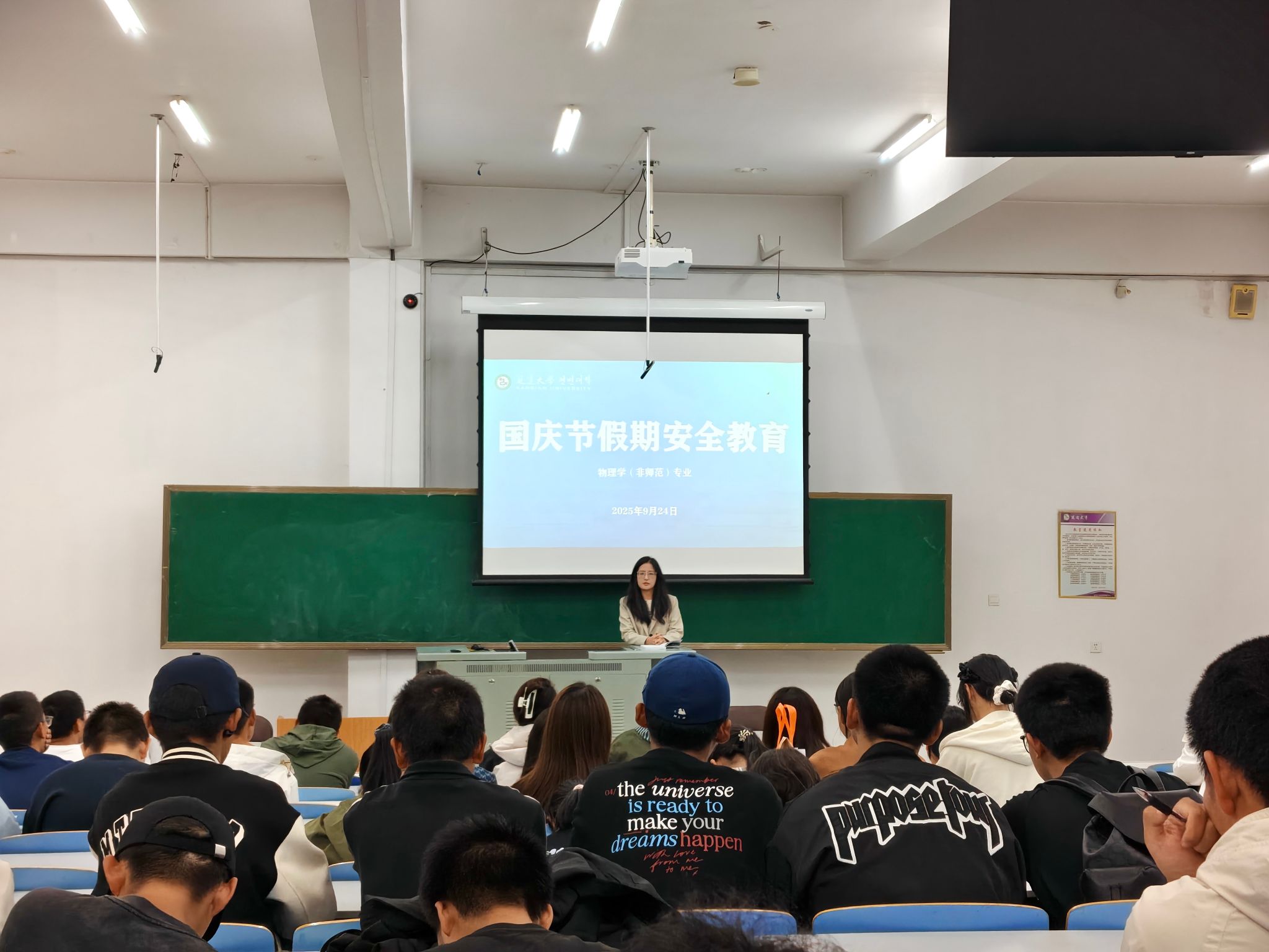 根据《延边大学关于做好2025年中秋、国庆假期校园安全工作的通知》要求,为切实做好国庆、中秋“双节”假期学生安全教育管理工作,理学院开展安全教育主题班会。
