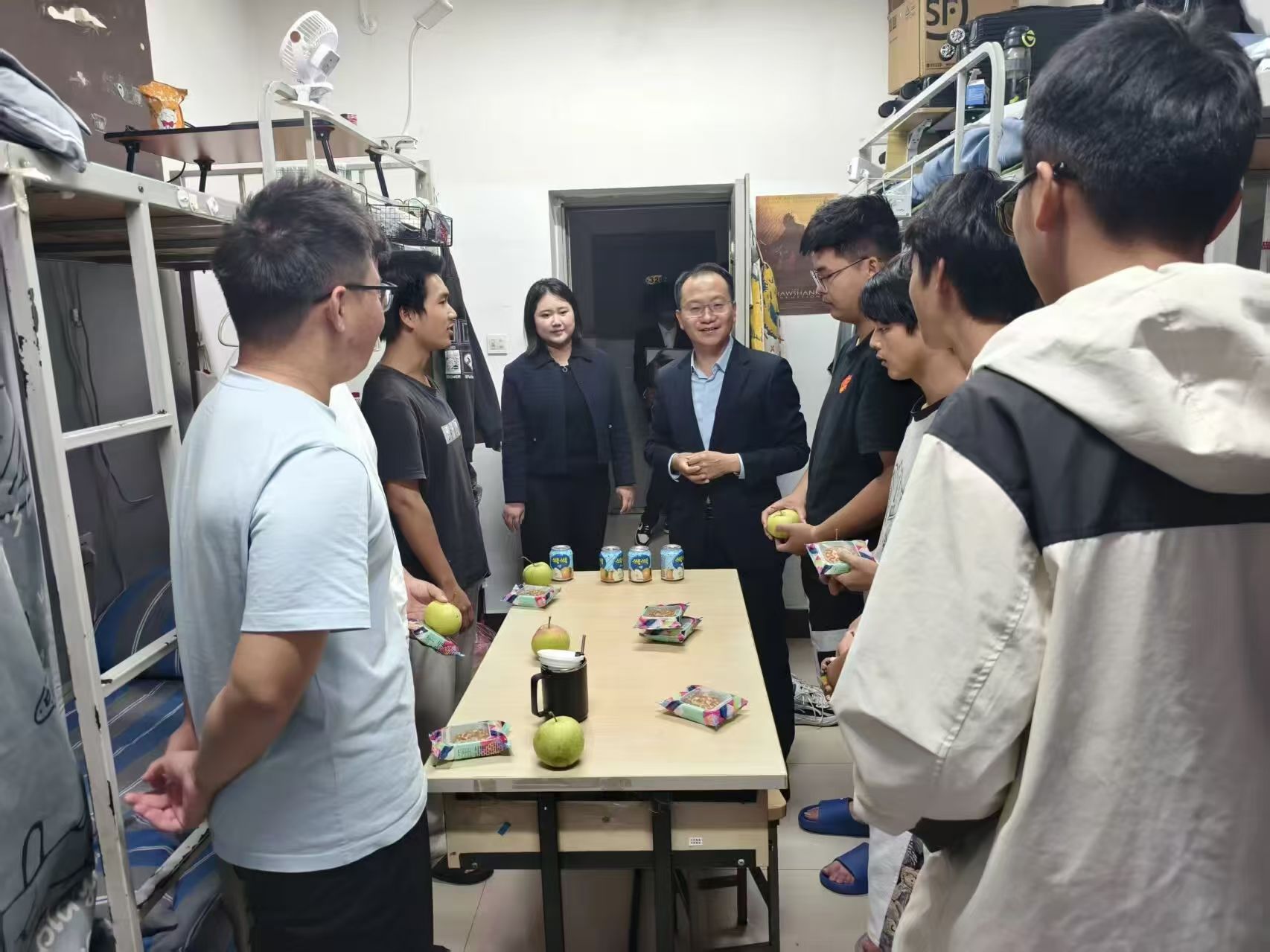 朴虎森带着精心挑选的中秋月饼、苹果梨,逐一走访了留校学生的宿舍。每到一处,都会热情地为学生送上节日的祝福,并与他们亲切交流。详细询问同学们的家乡、学习及生活情况,关切地提醒同学们在节日期间要注意个人安全,合理安排学习与休息时间,遇到困难要及时向学院和老师反馈。