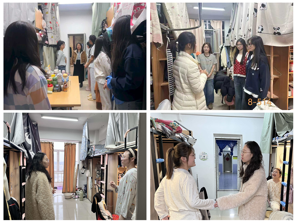 走访过程中,辅导员们秉持“安全第一、育人为本”的原则,逐间深入各年级学生寝室,聚焦卫生状况、用电安全、消防安全三大核心要点,开展细致排查。对卫生状况良好的寝室予以肯定,对存在物品杂乱、卫生死角等问题的寝室,现场提醒同学们及时整改,引导大家养成整洁有序的生活习惯,共同营造干净舒适的“小家”环境。