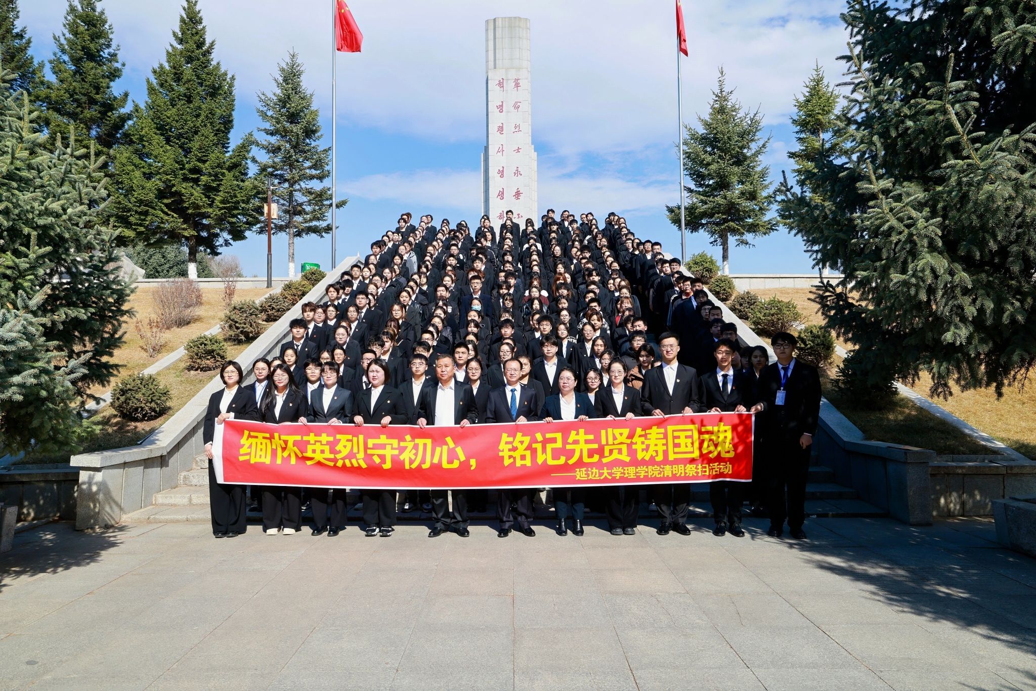 春风拂翠柏,清明寄哀思。在中华民族传统节日清明节来临之际,为深切缅怀革命先烈丰功伟绩,赓续红色血脉,厚植爱国爱党情怀,延边大学理学院党委、理学院关心下一代工作委员会于4月4日举办“缅怀忠骨 砥砺前行”清明祭扫活动,以庄重仪式缅怀先烈,用红色足迹砥砺初心,让红色精神在新时代青年心中生根发芽。