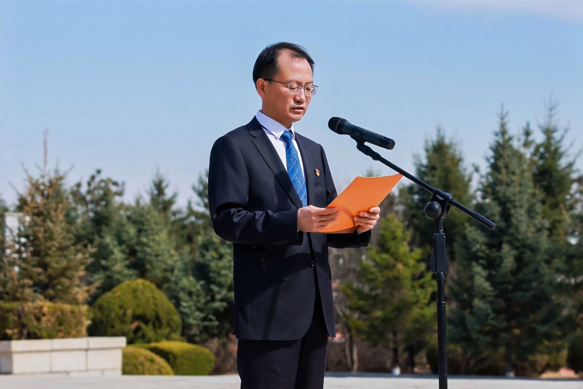 陵园内,革命烈士纪念碑巍然耸立,清晨八时四十分,清明祭扫仪式正式开始。全体师生整齐列队、神情肃穆,奏唱中华人民共和国国歌《义勇军进行曲》,面向革命烈士纪念碑行注目礼,学生代表张婉新、徐研等同学以真挚的情感,句句铿锵,讲述革命先烈的英勇事迹,传递红色精神与家国情怀。随后,全场肃立,集体默哀,并向先烈鞠躬致敬。理学院党委书记朴虎森围绕峥嵘岁月和时代使命做总结发言,号召全体师生铭记历史、不忘初心,以先烈为榜样汲取奋进力量,在新时代勇毅前行、开创未来,让哀思化作传承精神、勇担使命的坚定信念。